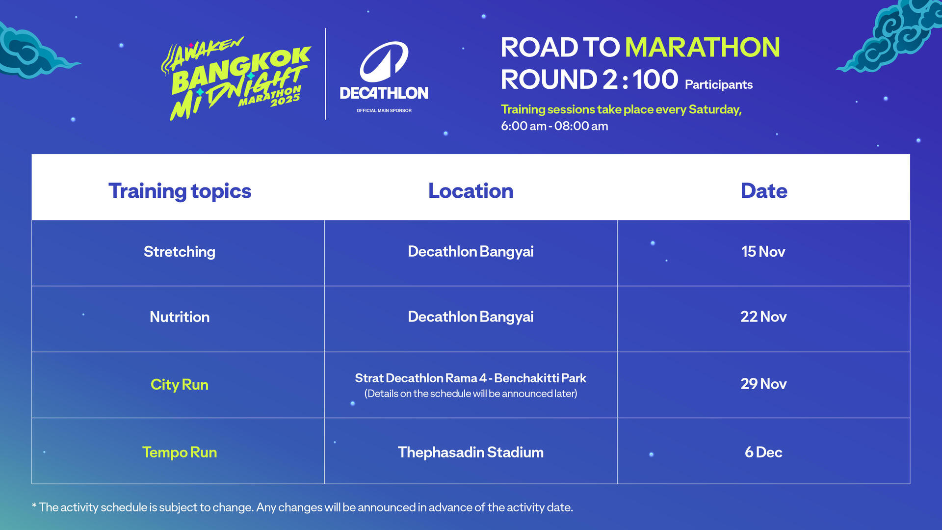 Route: The City Run starts at Decathlon Rama 4 and runs to Benchakitti Park. *Schedule will be announced later.*